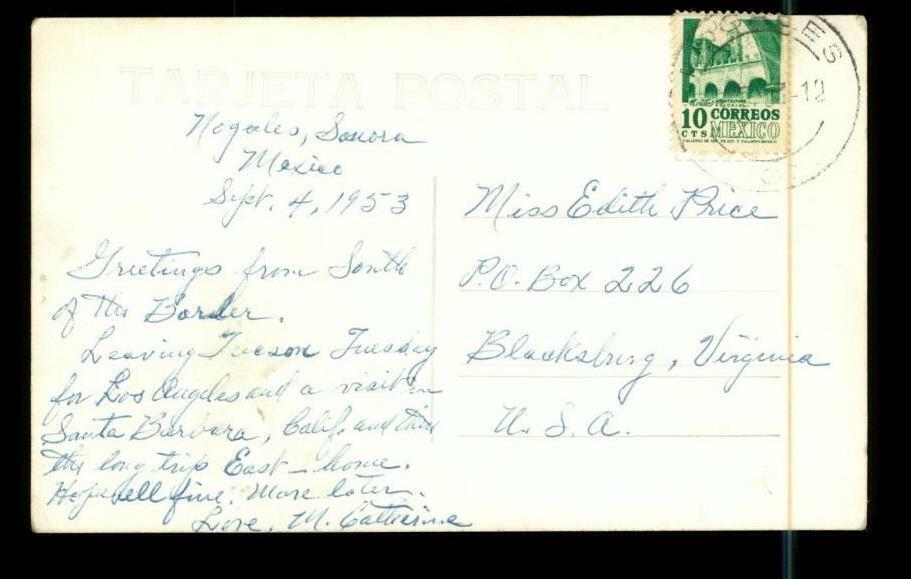 Vintage RPPC Postcard Estacion y Aduana: Station and Customs, Nogales Sonora Mexico 1953 Postal History