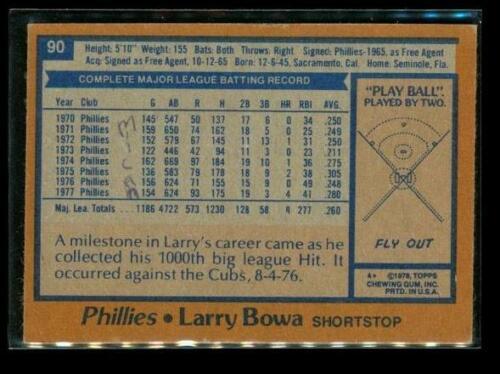 Vintage 1978 TOPPS Baseball Trading Card #90 LARRY BOWA Philadelphia Phillies