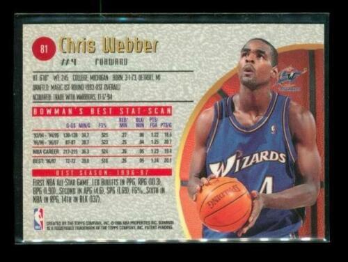 1997-98 TOPPS BOWMANS BEST Chrome Basketball Card #81 CHRIS WEBBER Washington Wizards