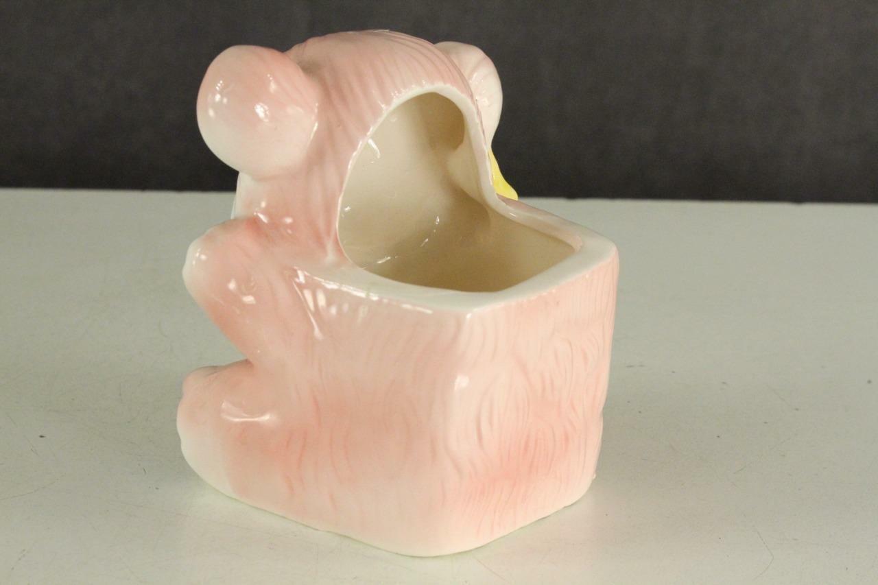 Vintage Art Ceramic BABY Gift Pink Teddy Bear Planter Pot 5" Tall. Needs a gentle soap and water clean. Great to fill with a flower or plant for a new baby gift. No smoke or pet odor. No chips or cracks.