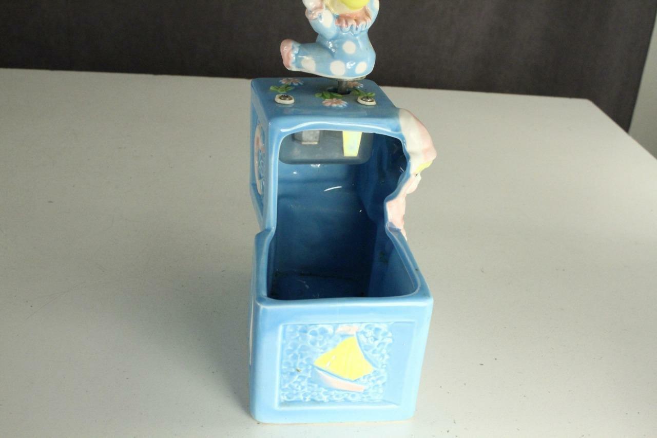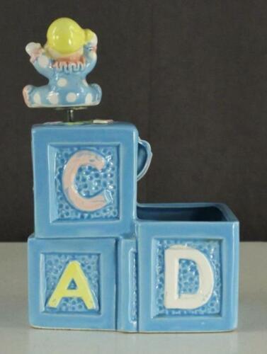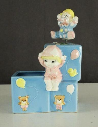 Vintage Art Japan Rubens Ceramic BABY Blocks Blue Clown Musical Lullaby Planter