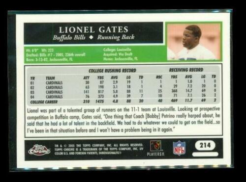 2005 TOPPS CHROME 50TH ANNIVERSARY Rookie Football Card #214 LIONEL GATES Buffalo Bills