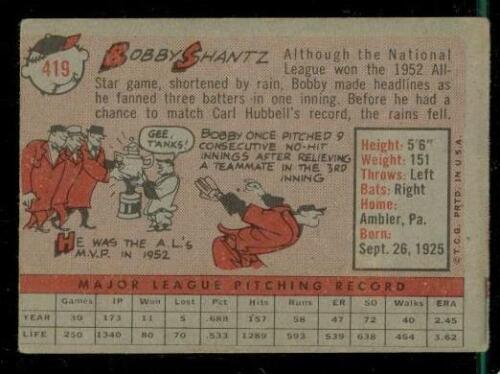 Vintage BASEBALL Trading Card TOPPS 1958 #419 BOBBY SHANTZ New York Yankees