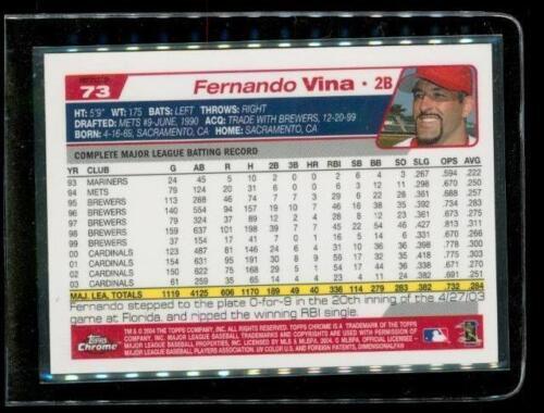 2004 TOPPS CHROME Refractor Baseball Card #73 FERNANDO VINA St. Louis Cardinals