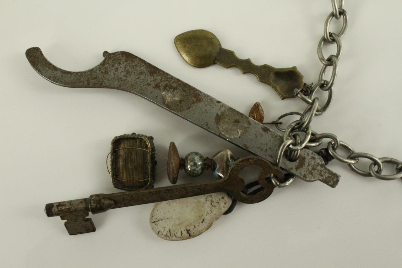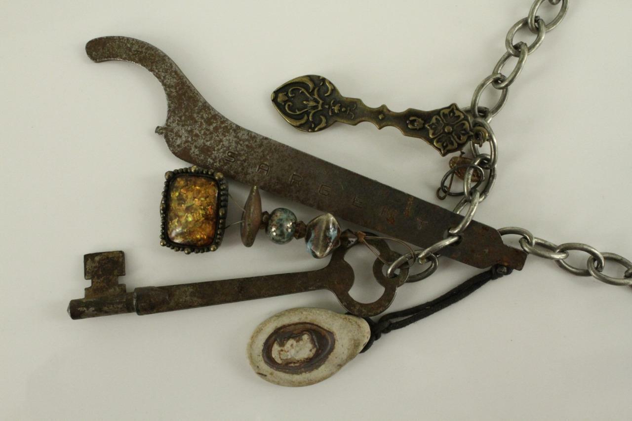 MODERN Costume Jewelry Metalware STEAMPUNK Craft Charm Pendant Necklace 30" long. Nice variety of pendants, charms, odds ends.
