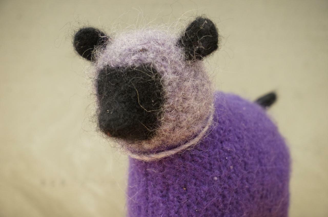 Hand Crafted Baby Toddler Plush Toy Fuzzy Purple Black Knitted Wool Sheep