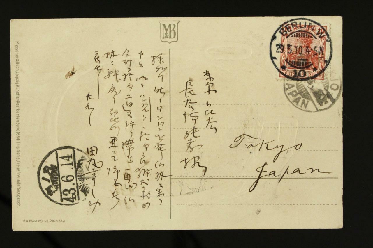 1910 Postcard Postal History BERLIN Germany to TOKYO JAPAN Lassie Collie Dog. No smoke or pet odor. Please refer to photos in listing for further information on condition.