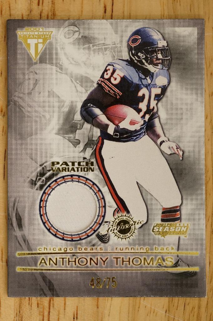 2001 Titanium Post Season Jerseys Patch Variation 25 Anthony Thomas Football Card 48/75 - jersey relic card
