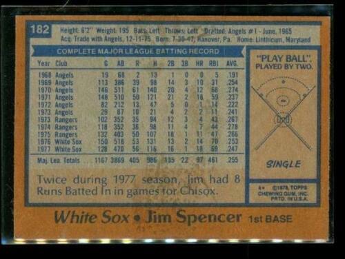 Vintage 1978 TOPPS Baseball Trading Card #182 JIM SPENCER Chicago White Sox