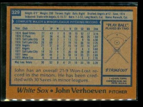 Vintage 1978 TOPPS Baseball Trading Card #329 JOHN VERHOEVEN Chicago White Sox