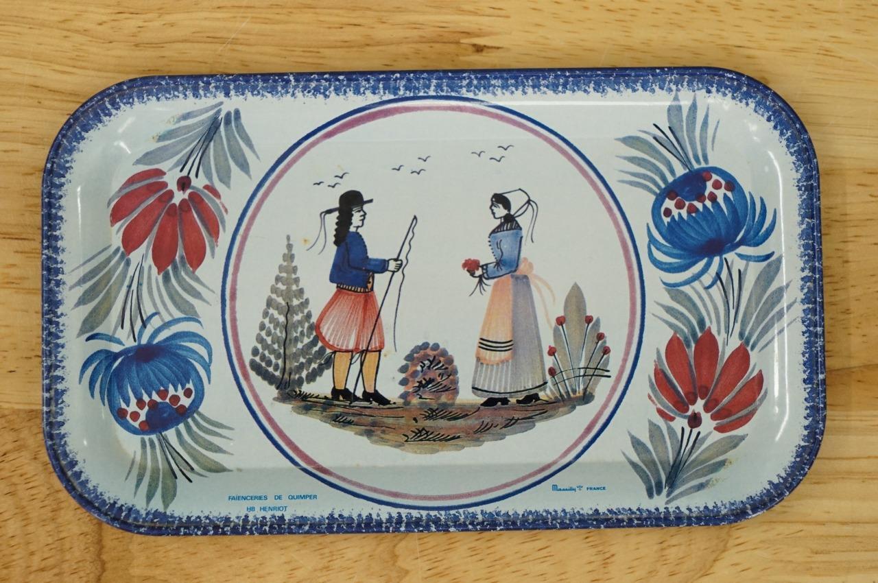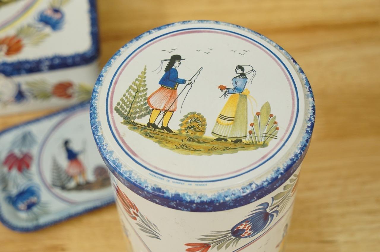 Vintage 3PC Metalware Lot Massilly France Tins Litho QUIMPER Pattern HB Henriot