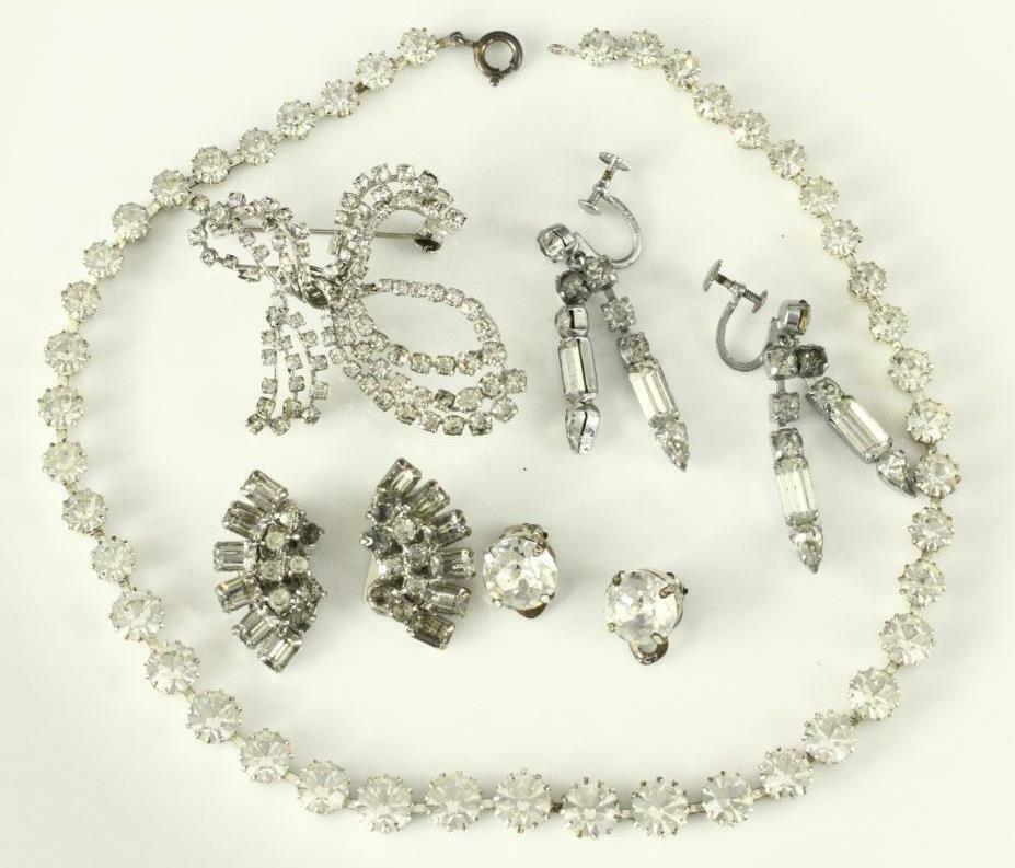 Vintage Costume Jewelry 1950 Era Prom Jewelry Rhinestone Necklace Earrings Pin