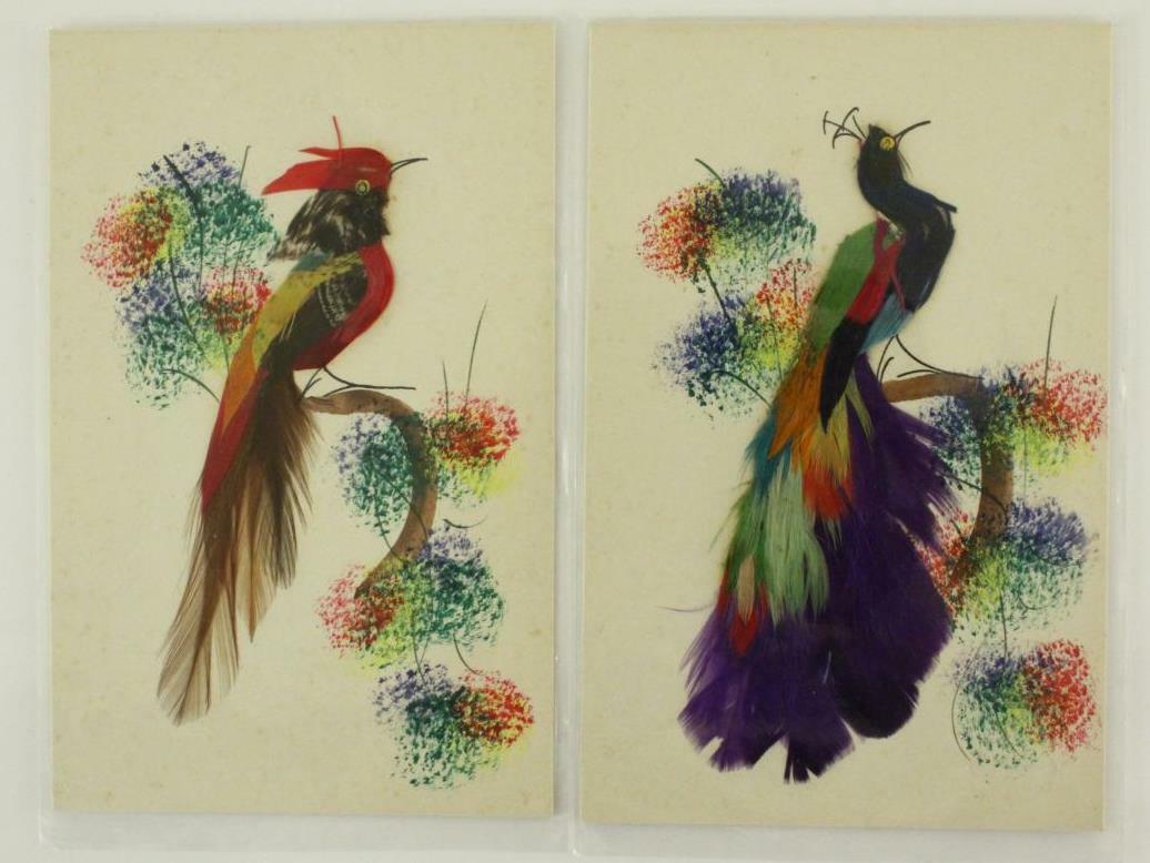 Vintage Paper Postcards Mexican Folk Art Feathered Peacock Pheasant Travel 2PCS
