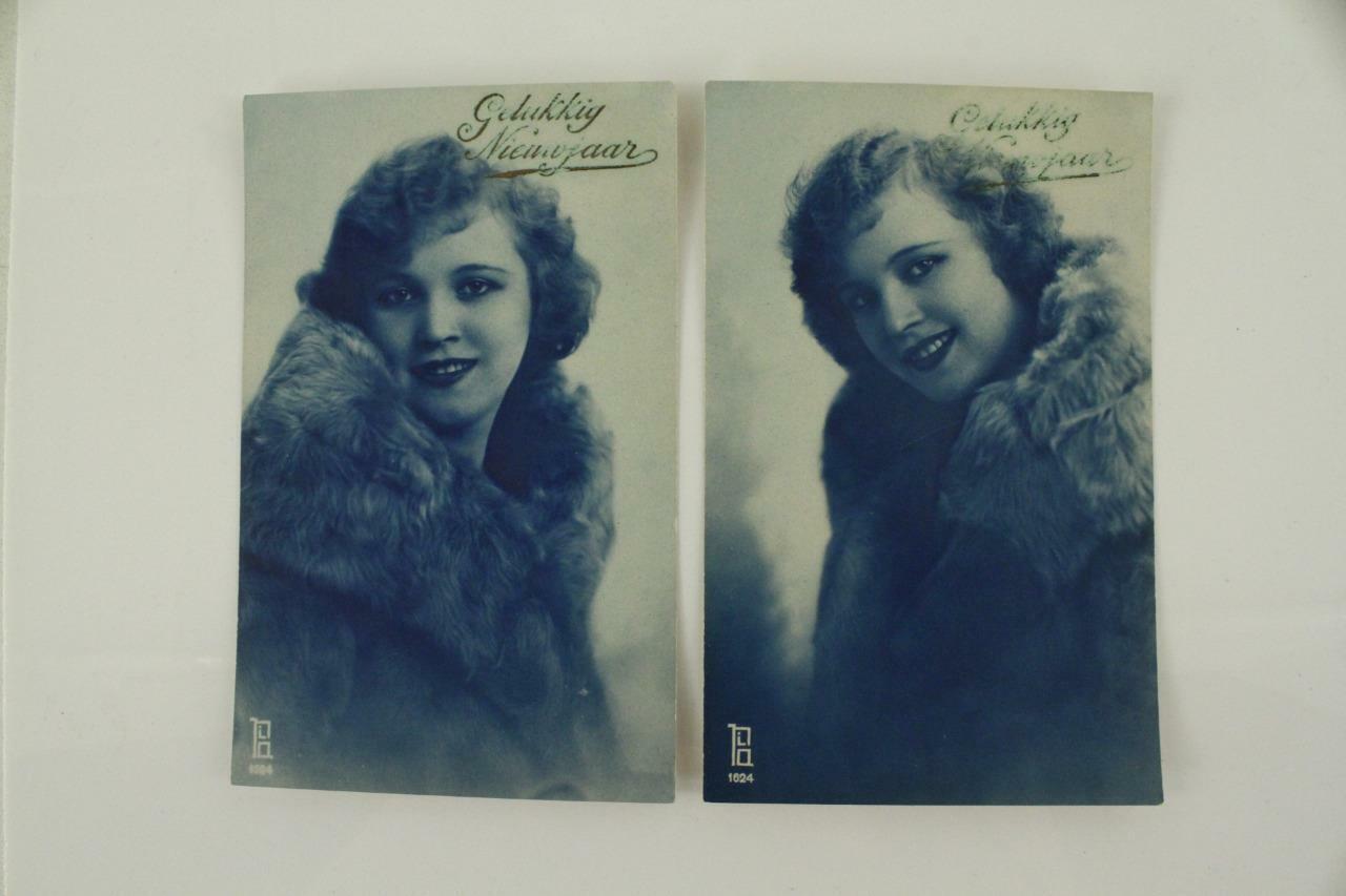 Vintage 2PC Lot Paper Blue Tone Postcards German Actress Happy New Year 1624 - not postally used. Smoke and pet free. You get the exact cards shown in the photos.
