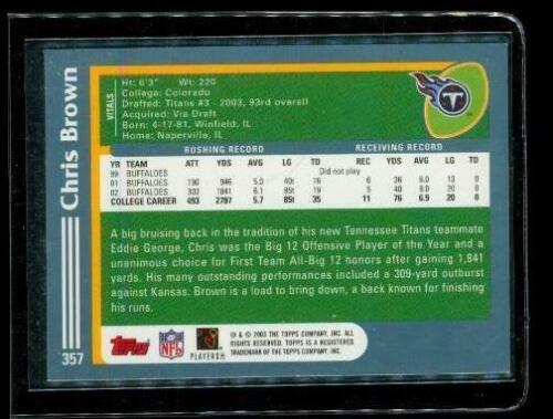 2003 TOPPS CHROME ROOKIE Football Card #357 CHRIS BROWN Tennessee Titans