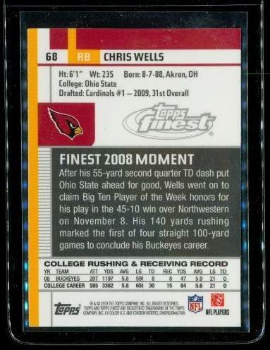 2009 TOPPS FINEST Chrome Rookie Football Trading Card #68 CHRIS WELLS Cardinals