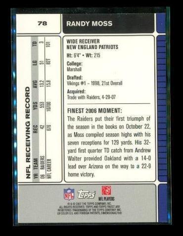 2007 TOPPS FINEST Chrome Football Card #78 RANDY MOSS New England Patriots