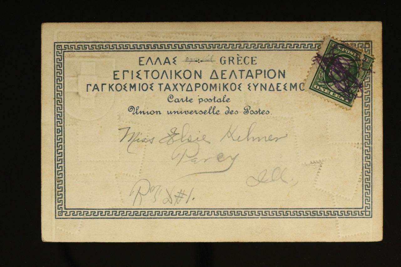 Vintage Postcard Postal History Greece to USA 1910 UDB Embossed Hand Cancel