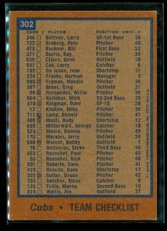 Vintage 1978 TOPPS Baseball Trading Card #302 TEAM CHECKLIST Chicago Cubs