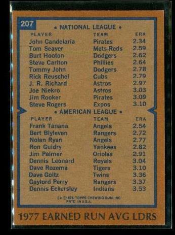 Vintage 1978 TOPPS EARNED RUN AVG LDRS Baseball Trading Card #207 JOHN CANDELARIA Pittsburgh Pirates N.L. - FRANK TANANA LA Angels A.L.