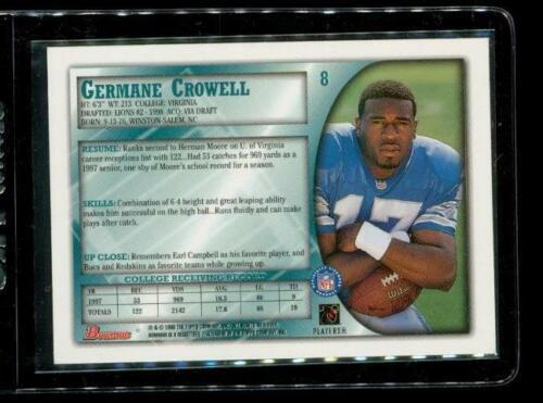 1998 TOPPS BOWMAN ROOKIE Football Trading Card #8 GERMAINE CROWELL Detroit Lions