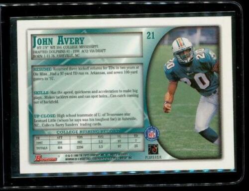 1998 TOPPS BOWMAN ROOKIE Football Trading Card #21 JOHN AVERY Miami Dolphins