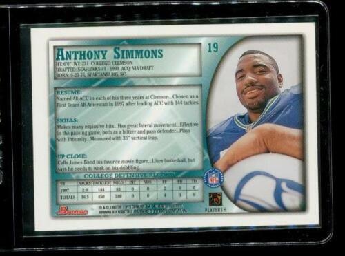 1998 TOPPS BOWMAN ROOKIE Football Trading Card #19 ANTHONY SIMMONS Seattle Sehawks