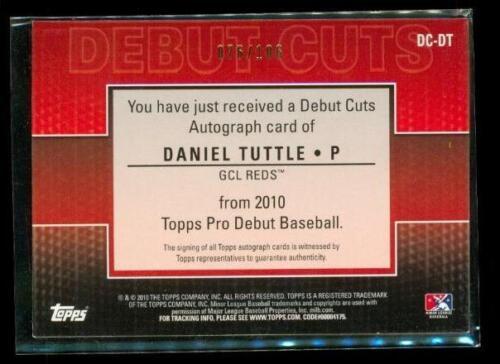 2010 TOPPS DEBUT CUTS AUTOGRAPH Baseball Card DC-DT DANIEL TUTTLE GCL Reds Limited Edition 076/106