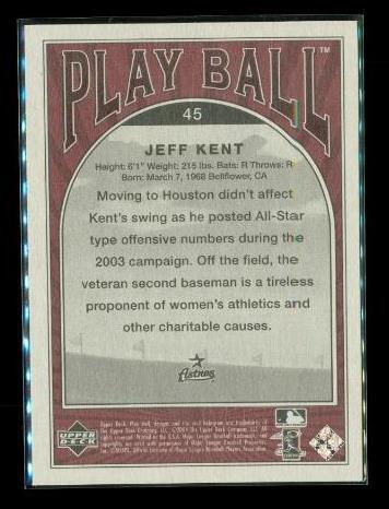 2004 UPPER DECK PLAY BALL Baseball Traidng Card #45 JEFF KENT Houston Astros