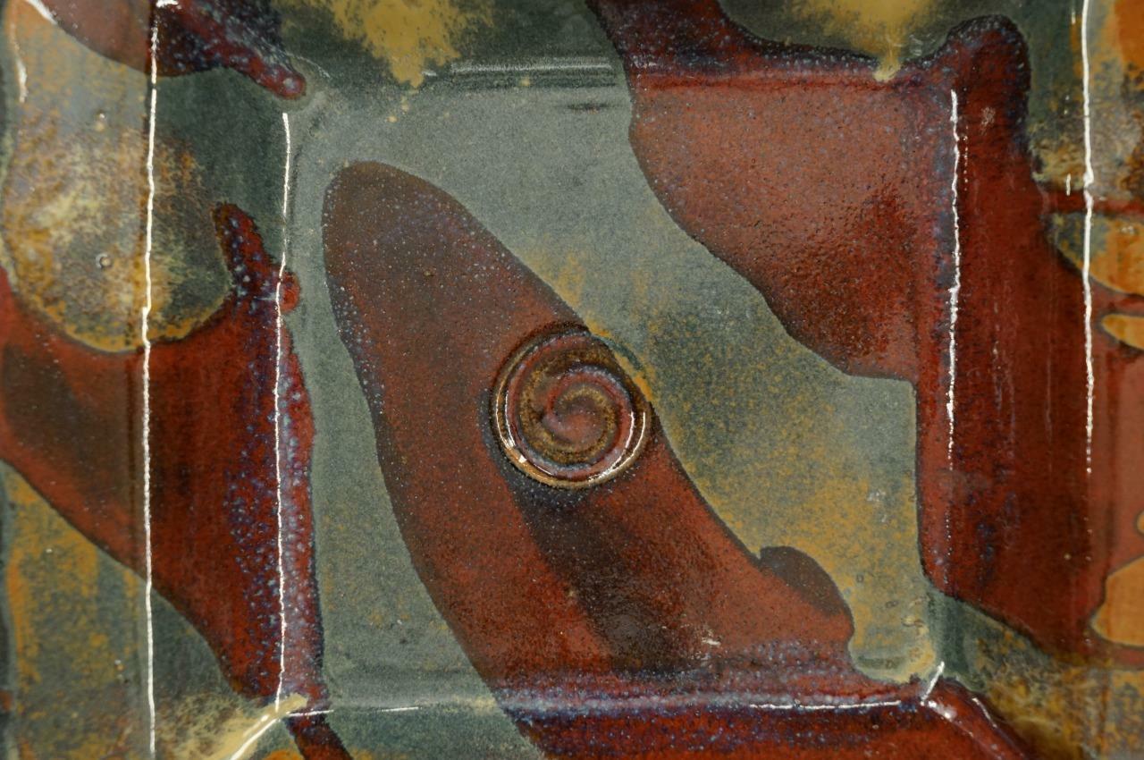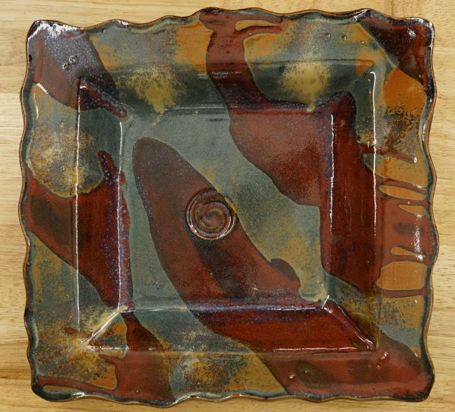 Studio Art Pottery JOHN KINDER Square Serving Bowl Bend Oregon Abstract Glaze