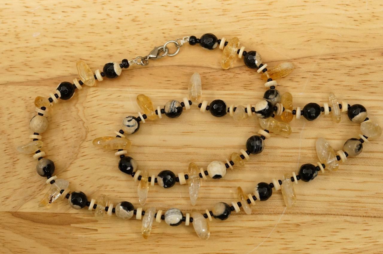Artisan Studio Jewelry Gemstone Citrine Drops Faceted Jasper Beaded Necklace. Silvertone clasp. Measures 20" long. No smoke or pet odors.