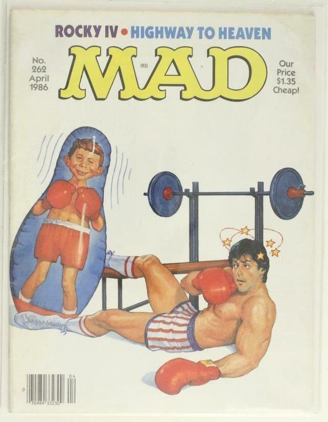 Vintage Paper Comic Book MAD MAGAZINE April 1986 ROCKY IV 262 Sylvester Stallone cover.