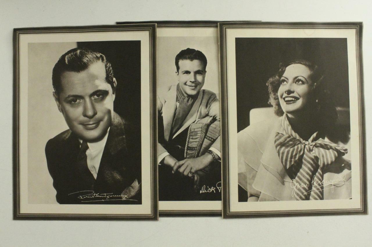 Vintage Hollywood Magazine Photo Lot Joan Crawford Robert Montgomery Dick Powell. 1930's era. They measure 9" by 12." The signatures are printed. No smoke or pet odors.
