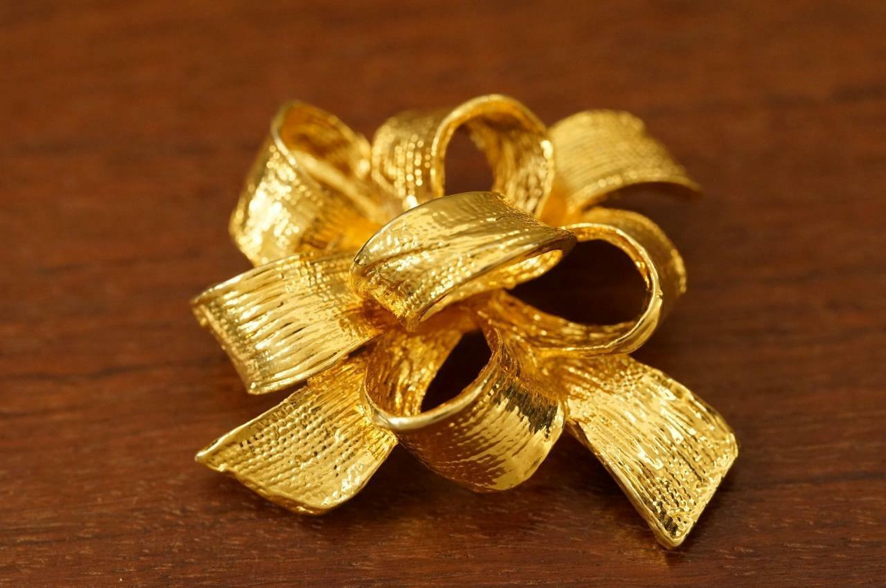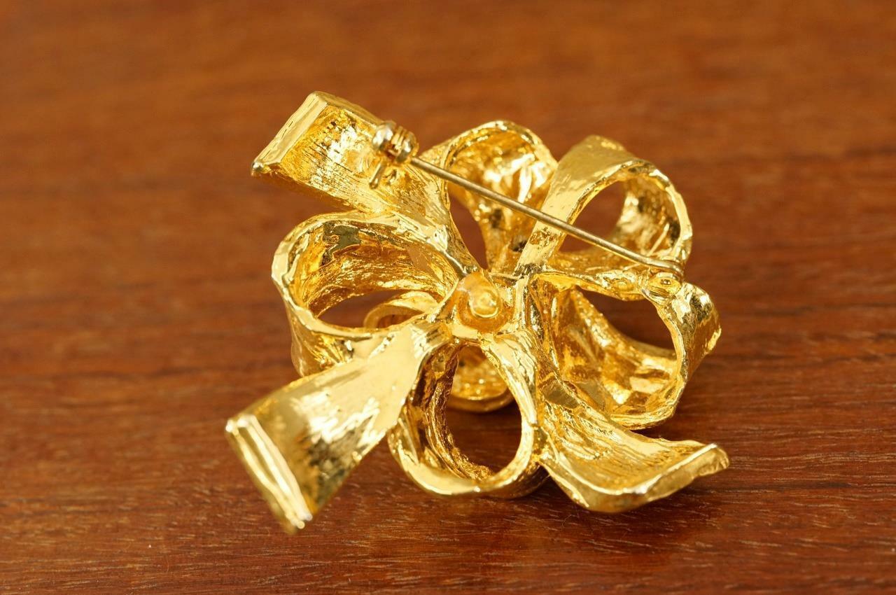Vintage 1970s Estate Costume Jewelry Gold Tone 3D Looped Ribbon Bow Brooch Pin
