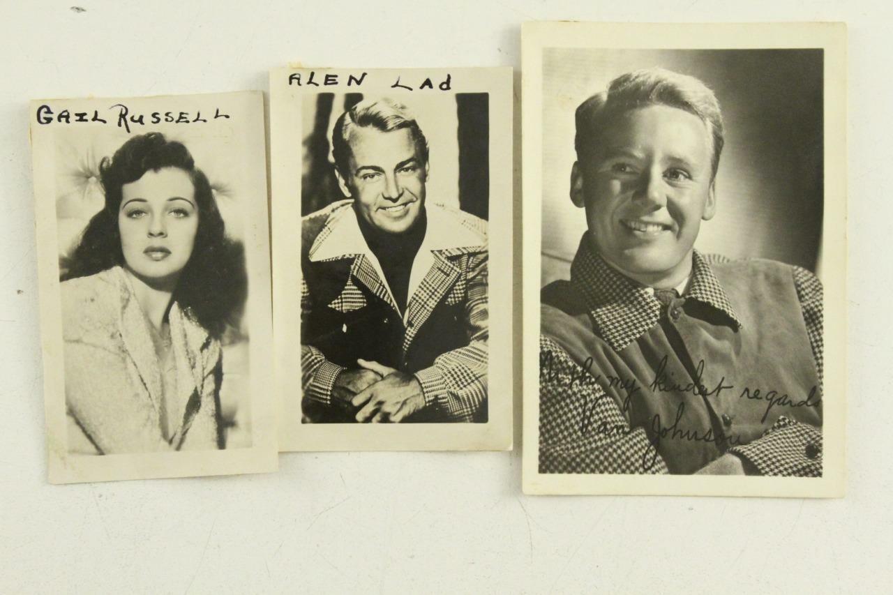 Vintage Hollywood Music Photo Lot Bobbie Dick Gail Russell Alen Lad Van Johnson - were mounted in a scrapbook. The signatures are printed. No smoke or pet odors.