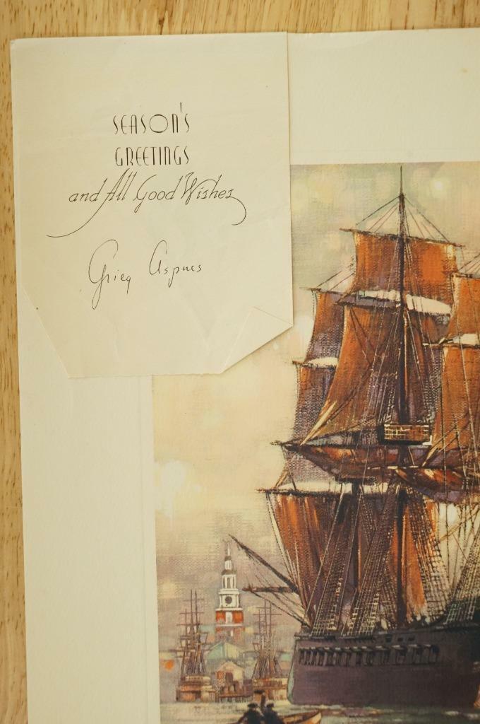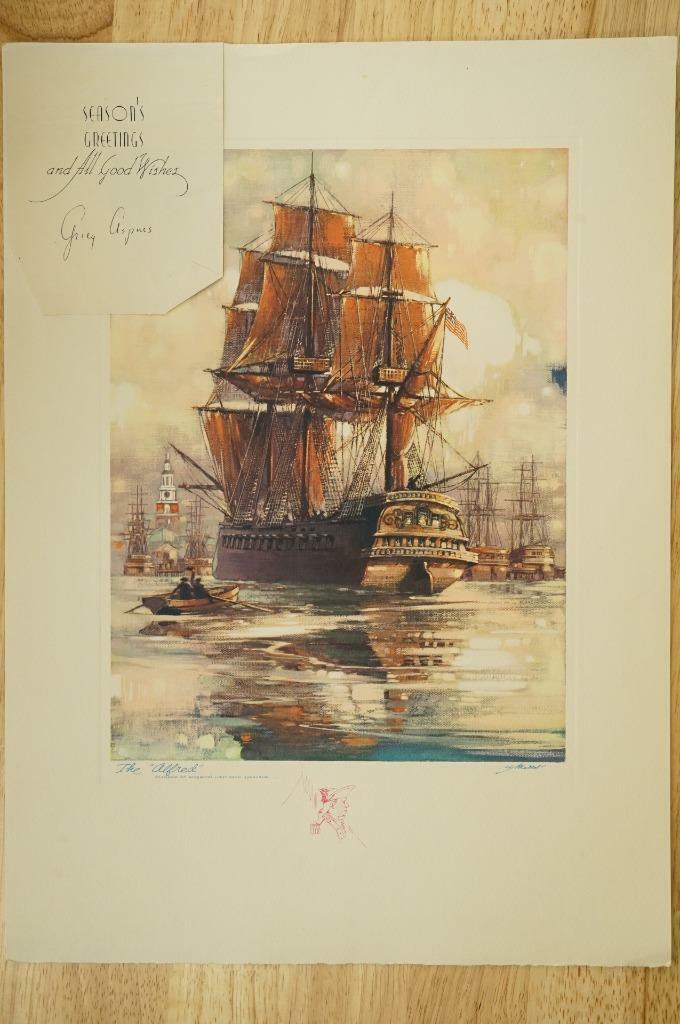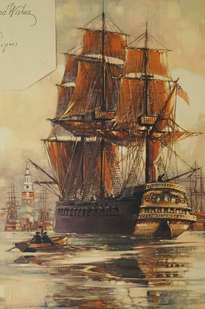 Vintage Art Colored Print The ALFRED Flagship Americas First Navy by Al Mettel