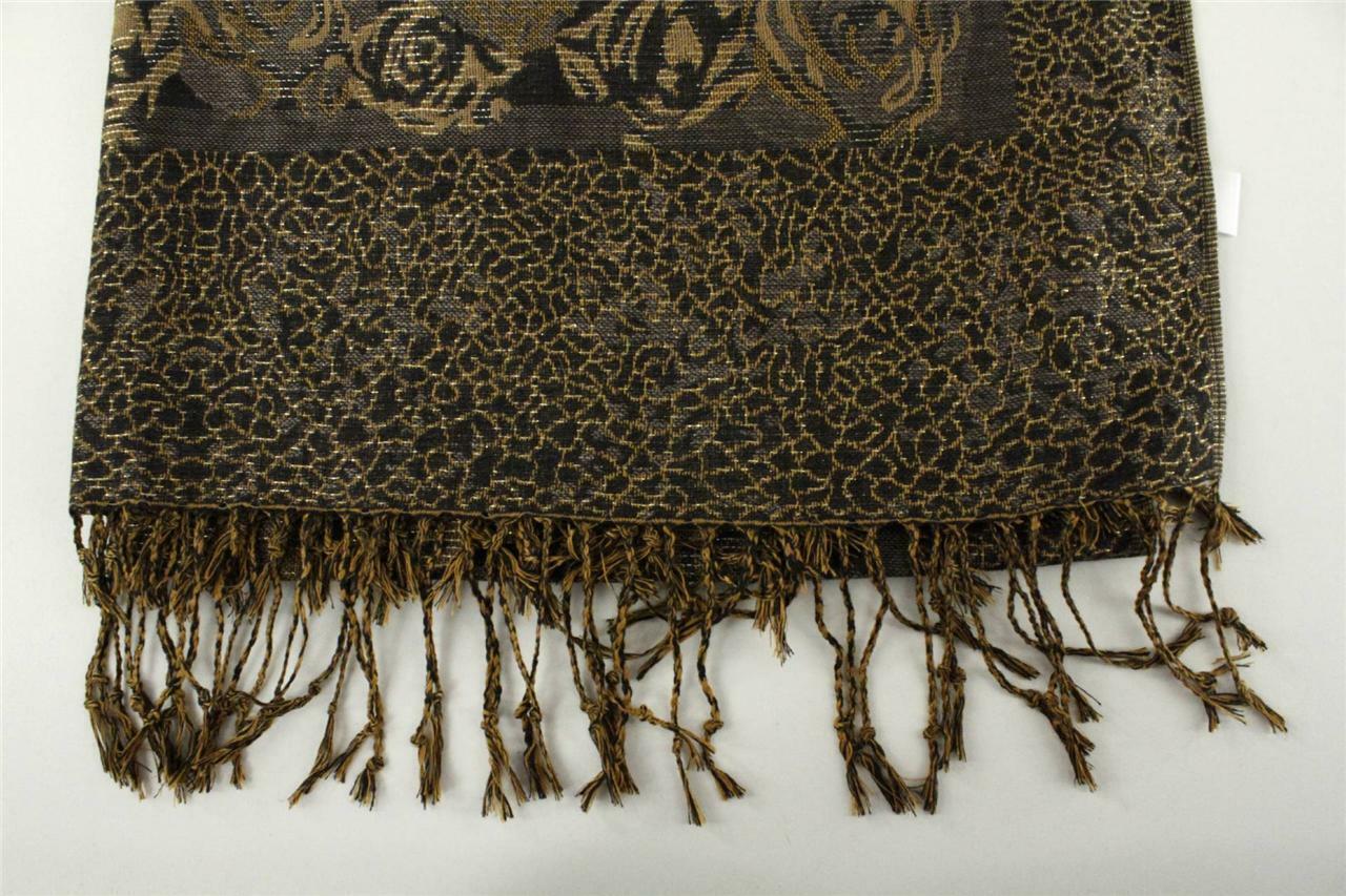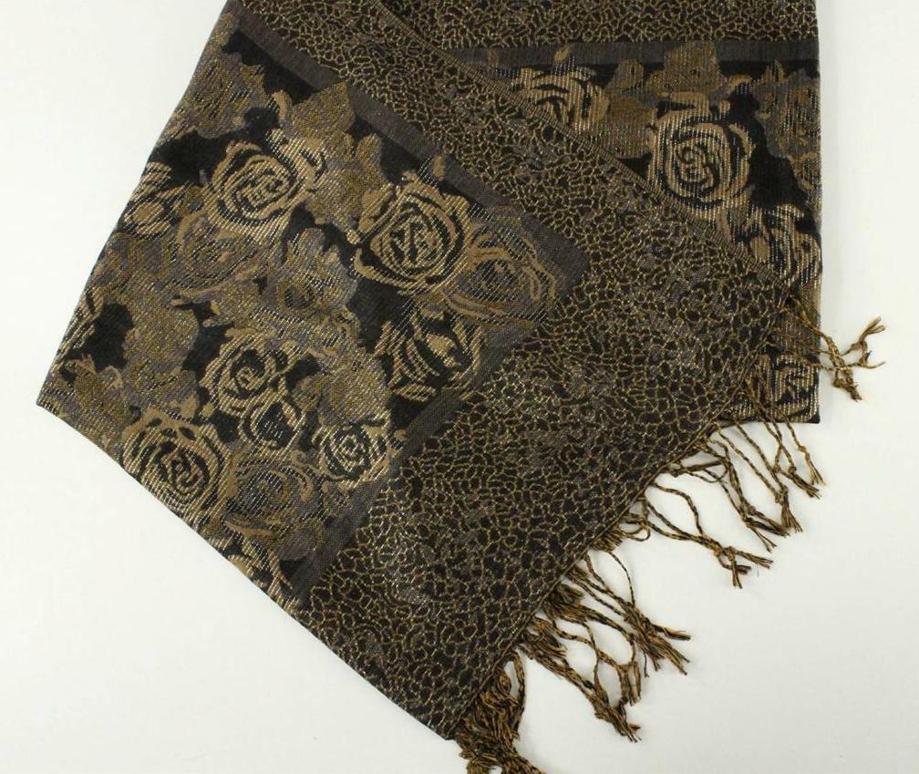 MODERN Ladies Accessory SUSAN GRAVER Scarf 100% Polyester Black Gold Wrap