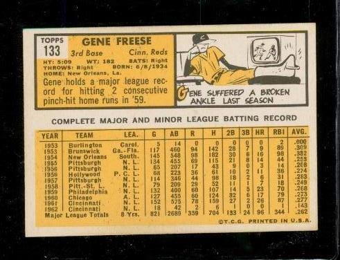 Vintage 1963 TOPPS Baseball Trading Card #133 GENE FREESE Cincinnati Reds