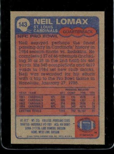 Vintage 1985 TOPPS Football Trading Card #143 NEIL LOMAX St Louis Cardinals