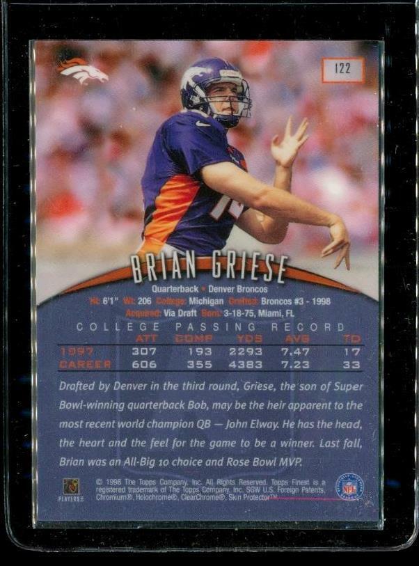 1998 TOPPS FINEST Rookie Chromium Football Card #122 BRIAN GRIESE Denver Broncos