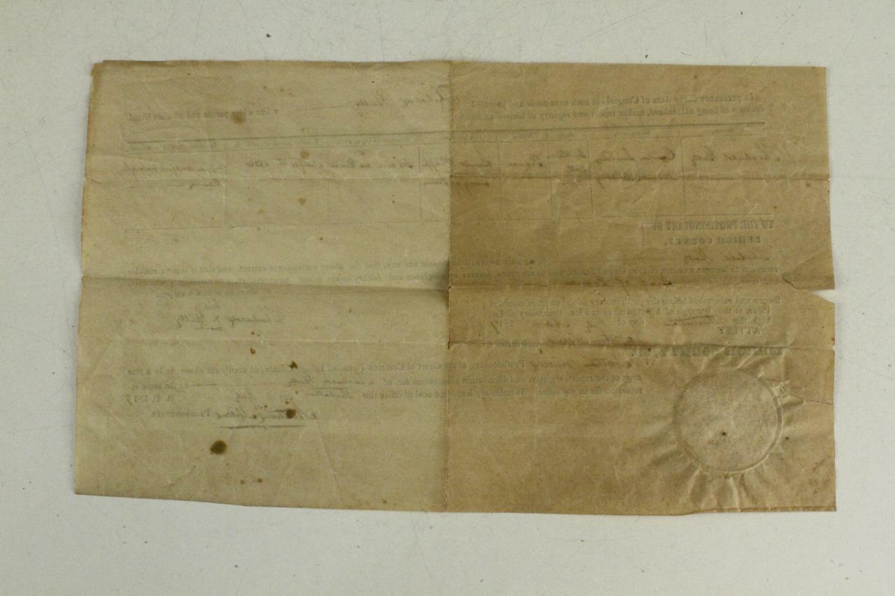 Vintage Document Theodore Gully 1847 Lehigh County PA Naturalized Citizen Form. Original county seal present. Creasing and edge wear noted.