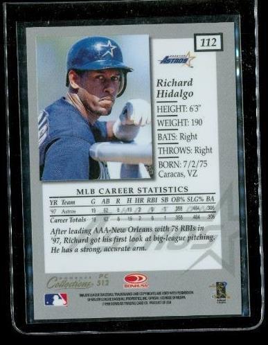 Vintage 1998 DONRUSS ELITE Holographic Baseball Card #112 RICHARD HIDALGO Astros