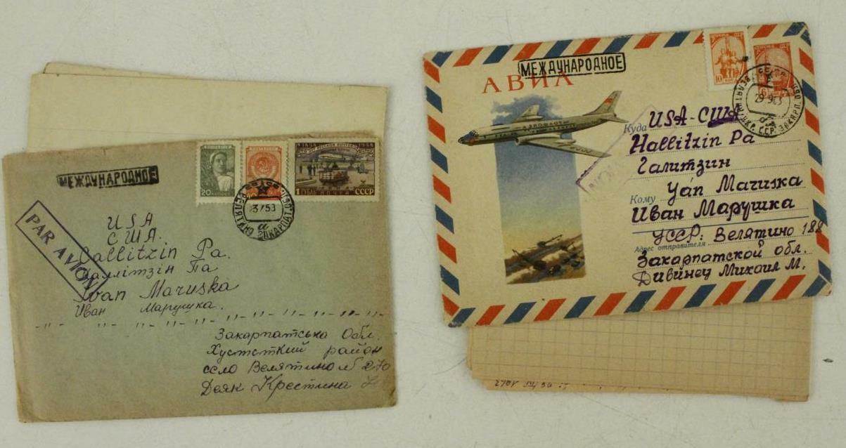 Vintage Postal History 2PC Correspondence Lot CCCP Russia to USA Airmail 1953
