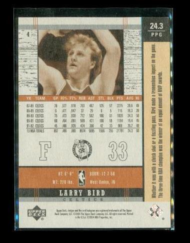 2004 UPPER DECK LEGENDS Basketball Trading Card #4 LARRY BIRD Boston Celtics