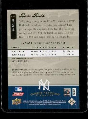 2008 Upper Deck Baseball Card Yankee Stadium Legacy YSL554 BABE RUTH 1930 - 1940