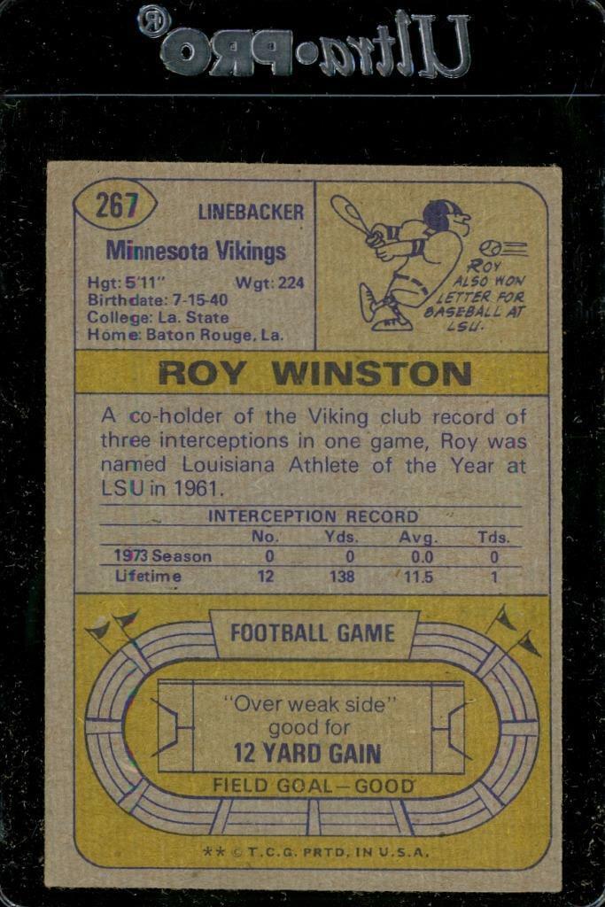 Vintage FOOTBALL Trading Card 1974 Topps #267 Roy Winston Linebacker Vikings - light corner bumping.