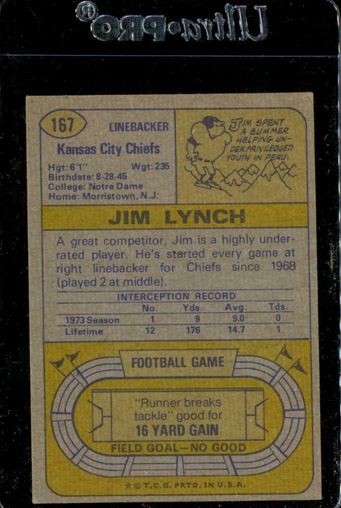 Vintage FOOTBALL Trading Card 1974 Topps #167 Jim Lynch Linebacker Chiefs