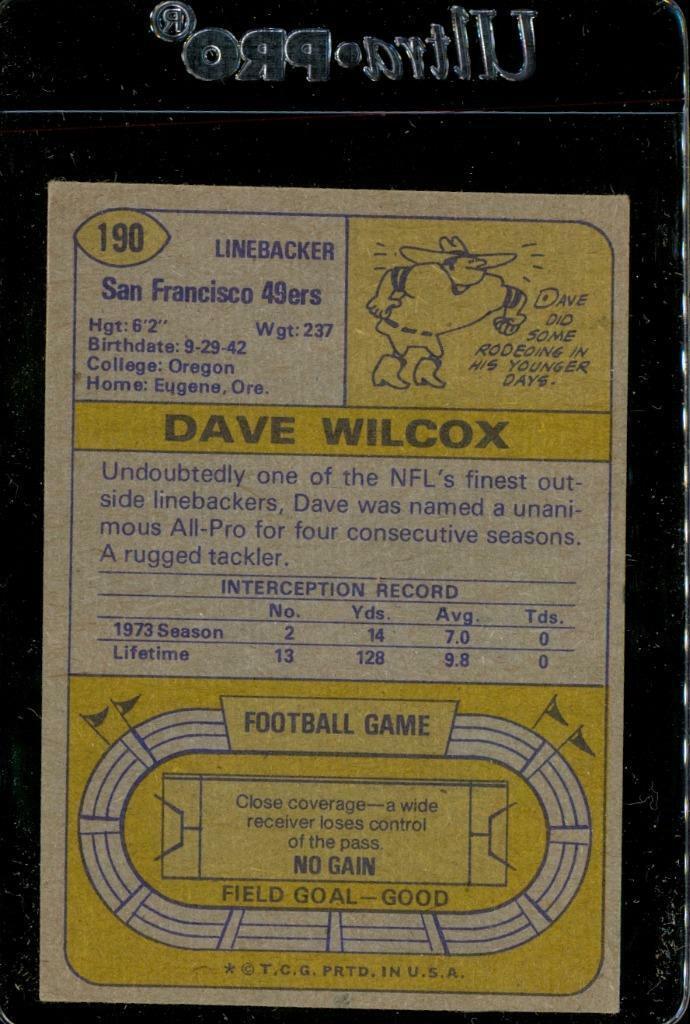 Vintage FOOTBALL Trading Card 1974 Topps #190 Dave Wilcox Linebacker 49ers