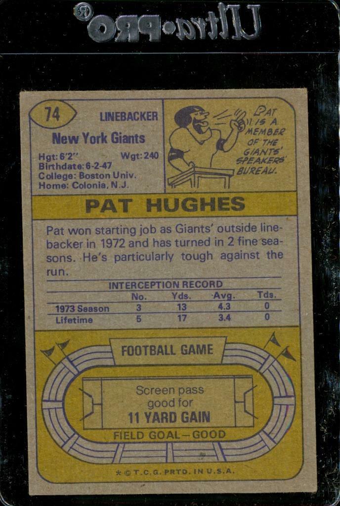 Vintage FOOTBALL Trading Card 1974 Topps #74 Pat Hughes Linebacker Giants - light corner bumping.