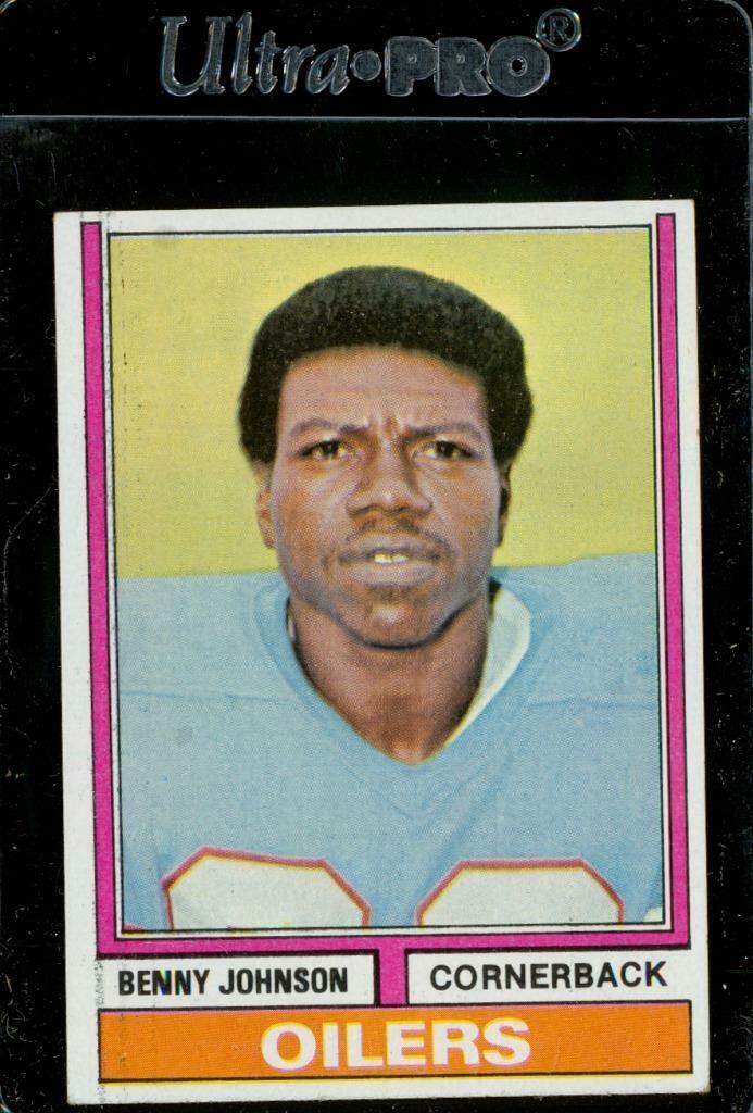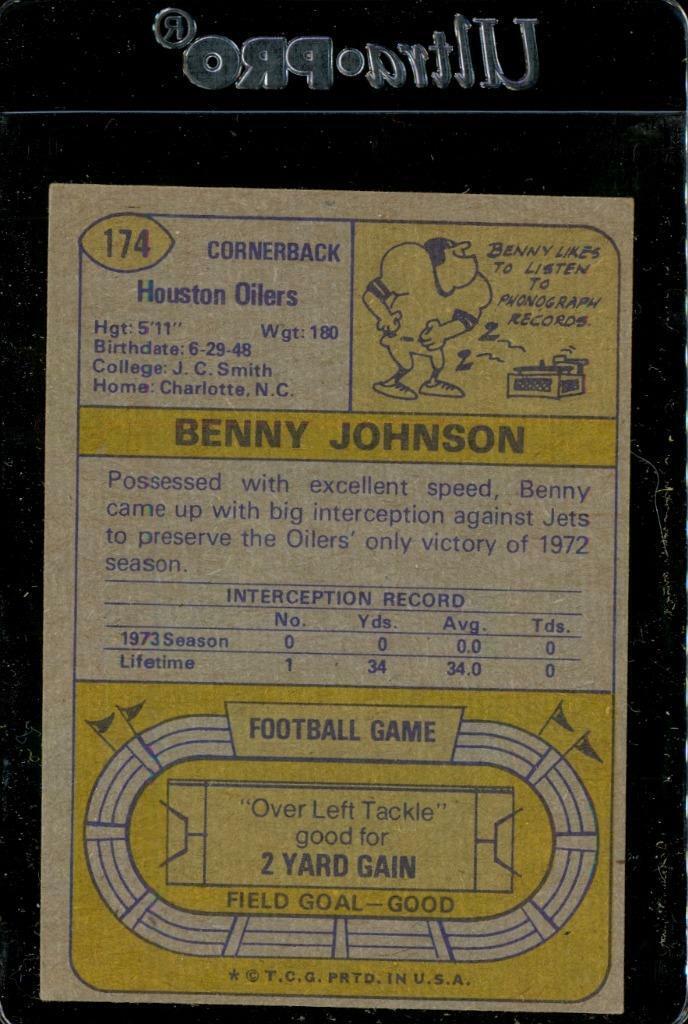 Vintage FOOTBALL Trading Card 1974 Topps #174 Benny Johnson Cornerback Oilers - light corner bumping.